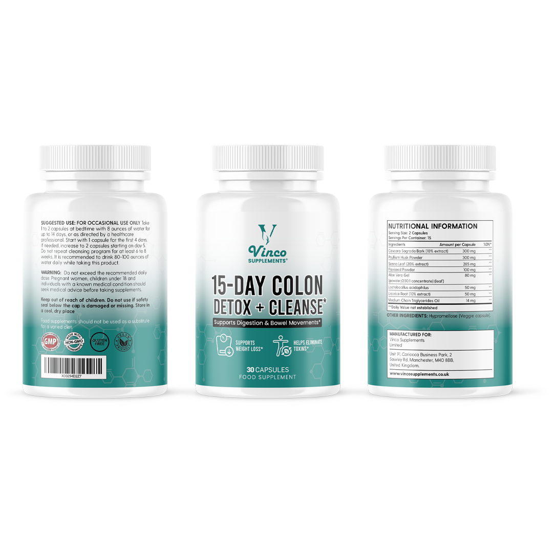 Brand: Vinco Supplements Features: Powerful 15-Day Cleanse: This colon detox programme supports weight loss and helps eliminate toxins from your body. Relieves Discomfort: The herbal stool softener in this supplement relieves constipation and bloating. Probiotic Support: Probiotics promote a hea...