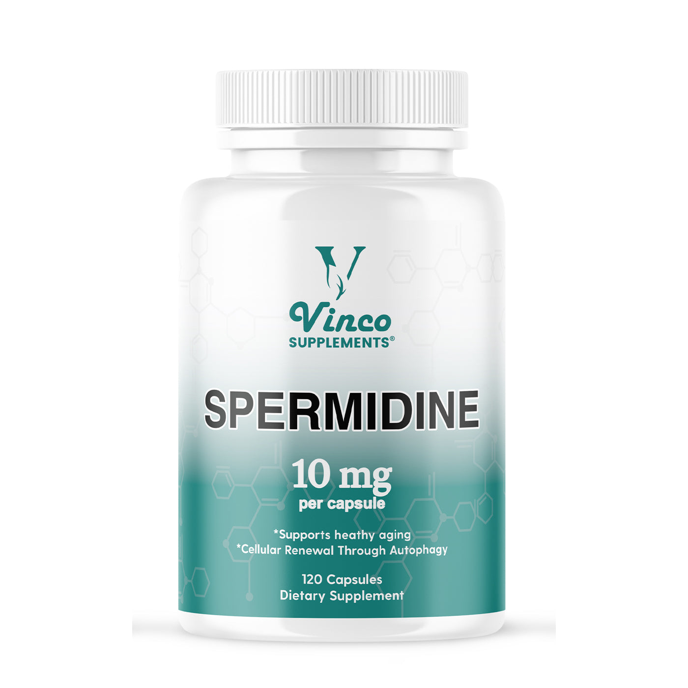 Brand: Vinco Supplements Features: PREMIUM SPERMIDINE SUPPLEMENT: Our Vinco Spermidine 10mg is a potent and high-quality supplement, offering 10mg of spermidine per serving. Derived from natural sources, this supplement is formulated to support cellular health and longevity. Spermidine is renow...