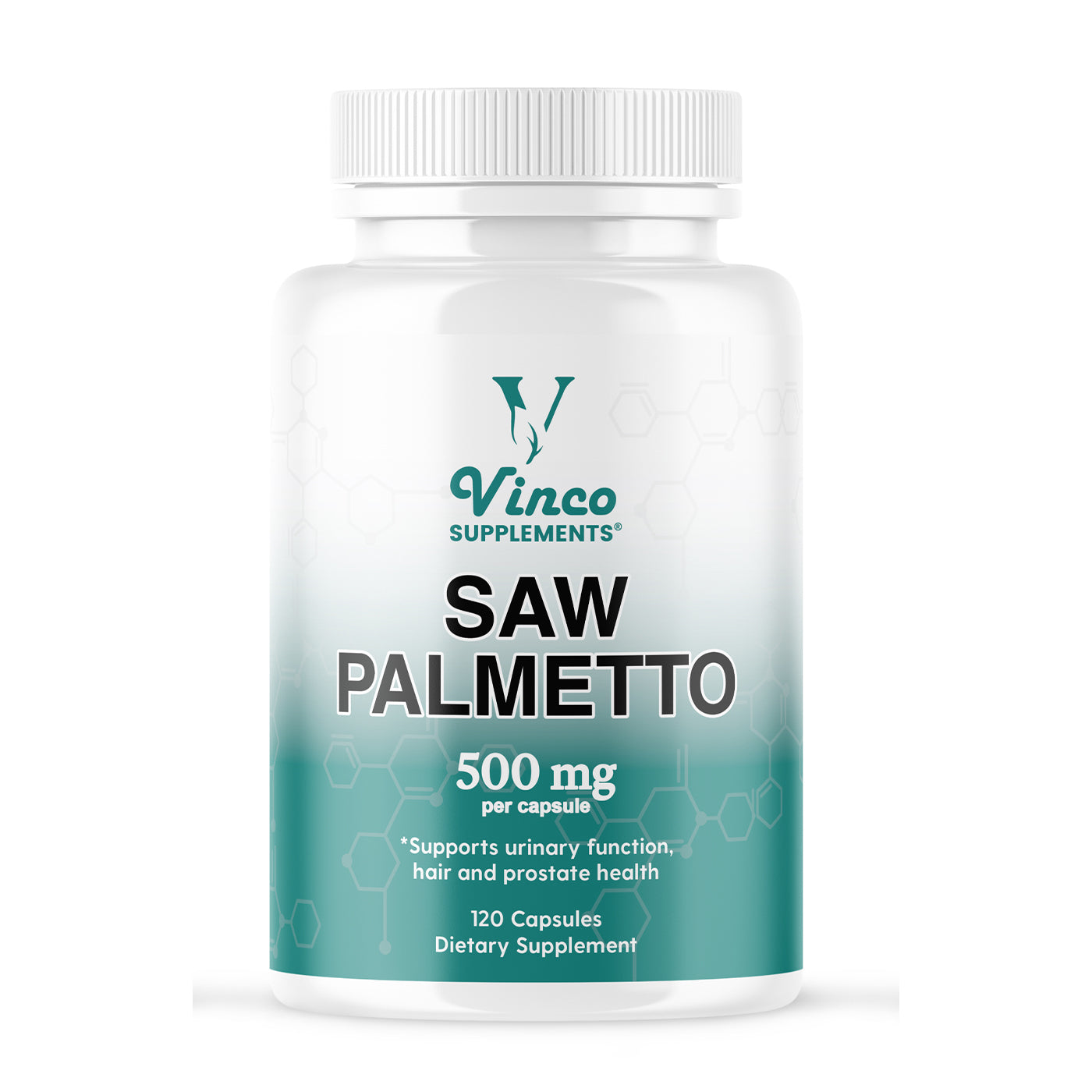Brand: Vinco Supplements Features: PROSTATE AND URINARY SUPPORT: Our Organic Saw Palmetto capsules are formulated with 500mg of pure Organic Saw Palmetto extract per serving. This supplement is designed to support prostate health, particularly for those concerned with benign prostatic hyperpl...